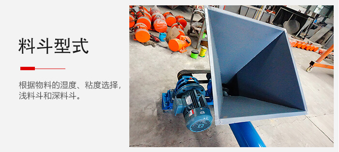 根據物料的濕度、粘度選擇。淺料斗的前壁斜度大而深度小,適用于運送潮濕和流散性不良的物料。深料斗的前壁斜度小而深度大,適用于運送干燥且流散性好的物料。這兩種料斗用在料斗呈稀疏布置的防腐螺旋輸送機中。對于有導向邊的料斗,由于當它繞過上滾筒時,前面料斗的兩導向側邊即為后面料斗的卸載導槽,故適用于運送沉重的及有磨損性的物料,這種料斗用在料斗作密集布置的防腐螺旋輸送機中。