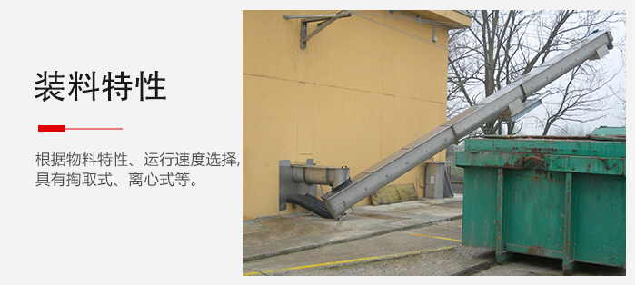 根據物料特性、運行速度選擇。掏取式主要用于輸送粉狀、顆粒狀、小塊狀的無磨琢性或半磨琢性的散裝物料,且多與離心式卸料配合應用。由于在掏取物料時不會產生很大的阻力,所以允許物料的運行速度較高,一般為0.8一2.0m/s.流入式用于輸送大塊狀和磨琢性大的物料。其料斗的布置很密,以防止物料在料斗之間散落。料斗的運行速度較低,一般不超過1m/s.因此多用于重力式卸料的防腐螺旋輸送機。