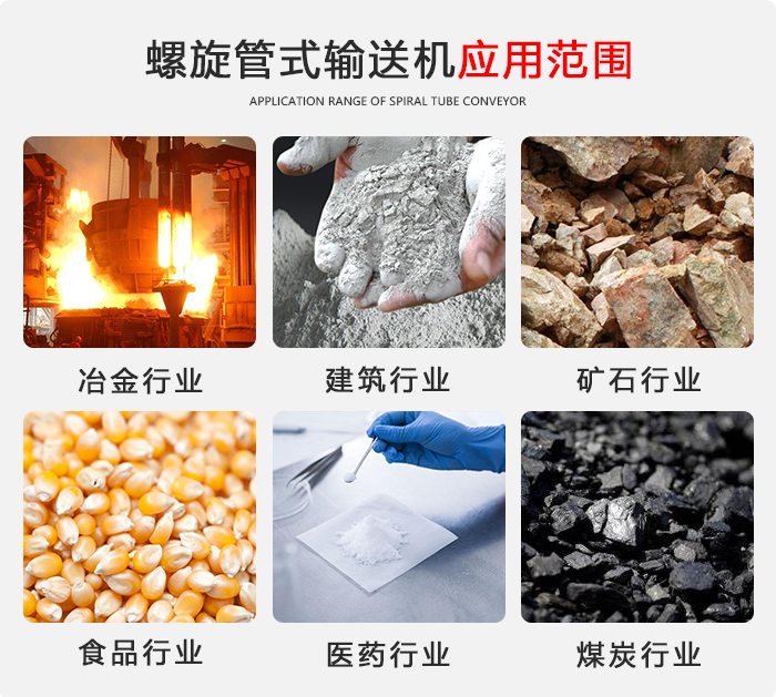 螺旋輸送機主要用于糧食、建材、冶金、化工、電力等行業對粉末、顆粒或小塊狀物料進行輸送任務,如水泥、混凝土、飼料、化肥、粉煤灰等物料,不宜輸送易變質的、粘性大的、塊度大的及易結塊的物料。